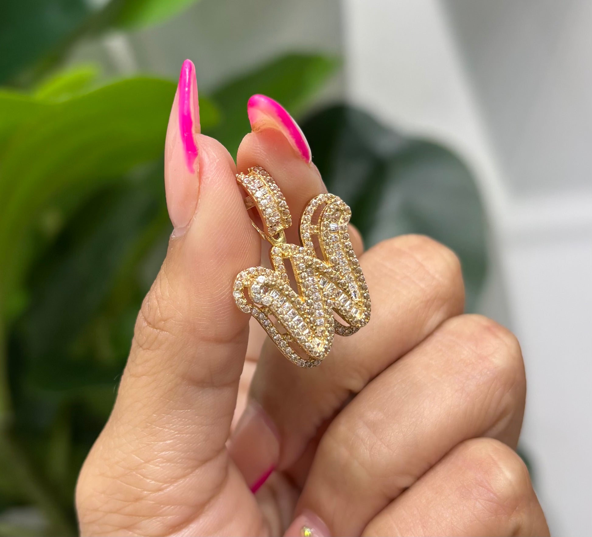 915- NEW 14K Full Cz Letter W Pendant W.G
