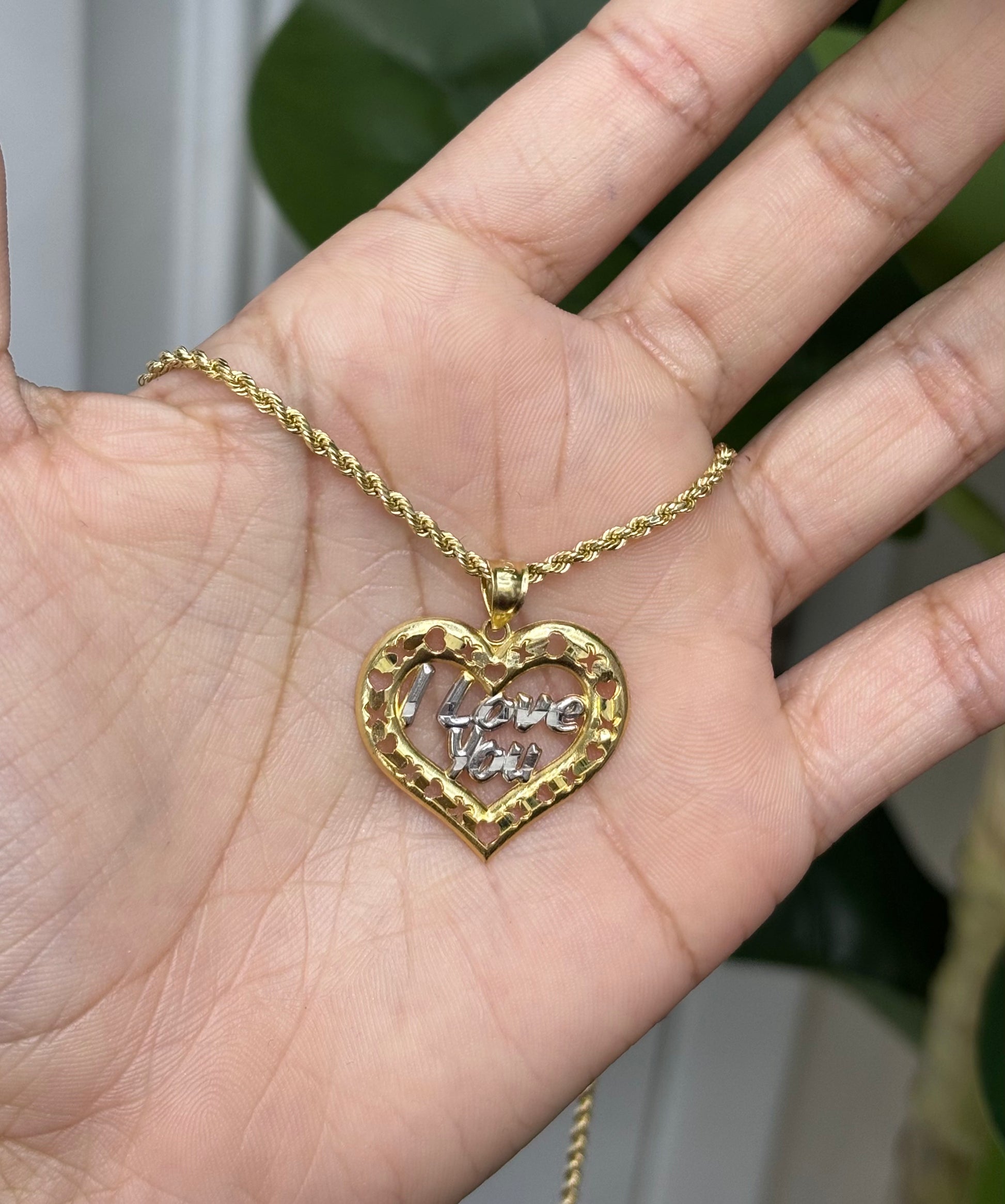 NEW 14K I Love You Heart two tone Pendant. 14k real yellow gold.