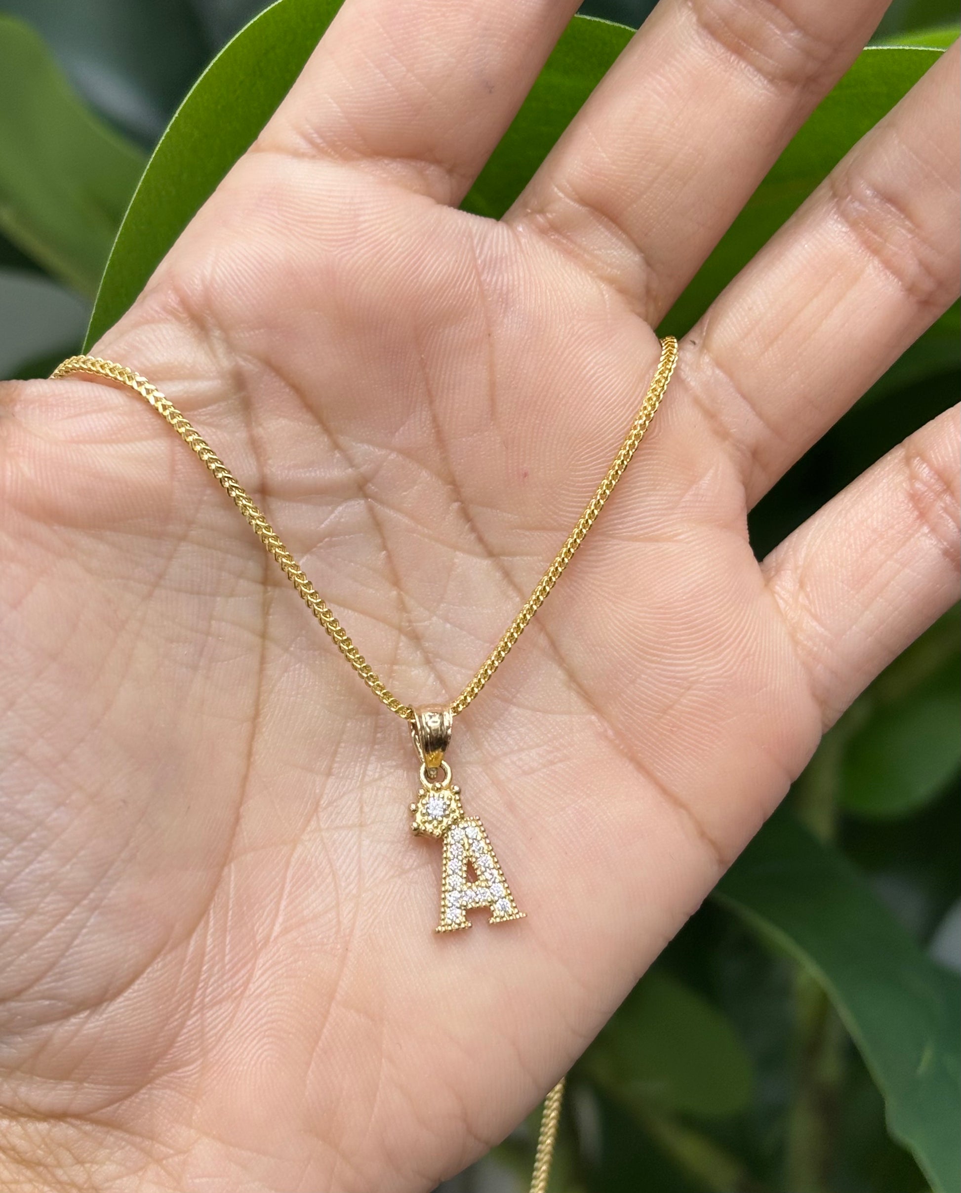 .NEW 14k Small Letter A Pendant (W.G) with Zirconia Stones. Made of real 14k Yellow Gold