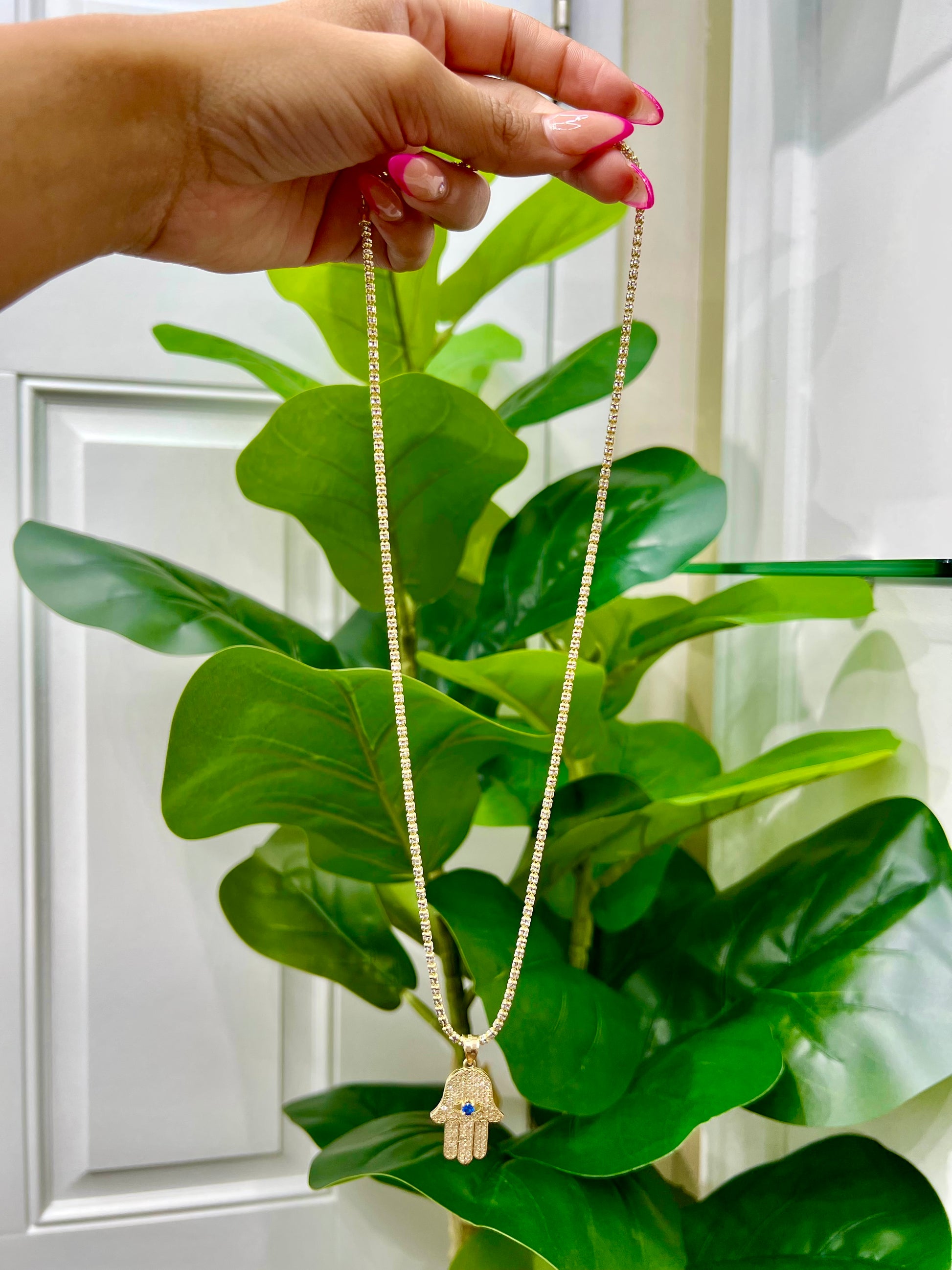 C13- NEW Ice Chain and Hamsa Hand Pendant Set W.G.