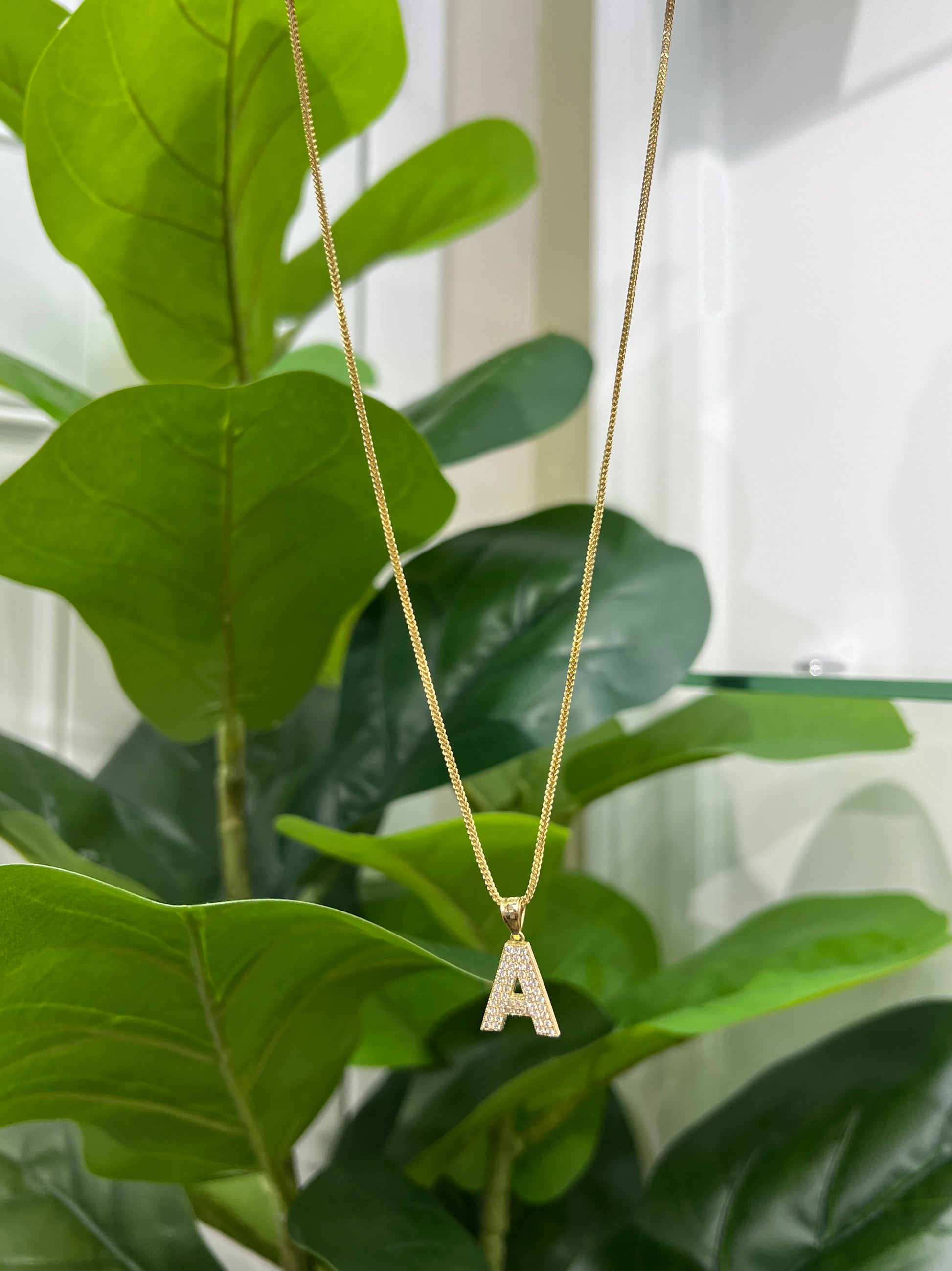 14K Franco chain and Letter A pendant with cz stones. Pendant made of 14k yellow Gold