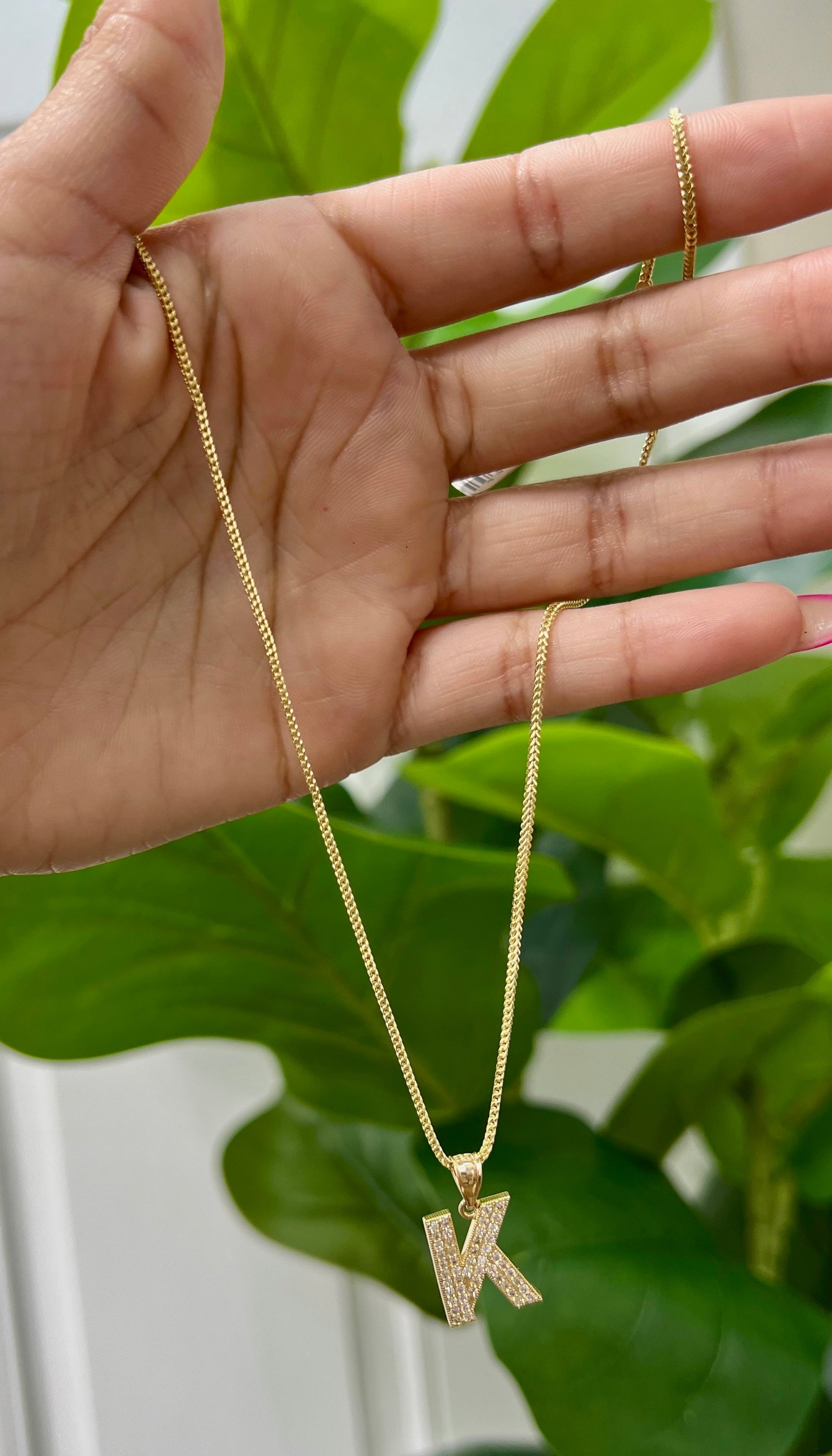 14K Franco chain and Letter K pendant with cz stones. made of 14k yellow Gold