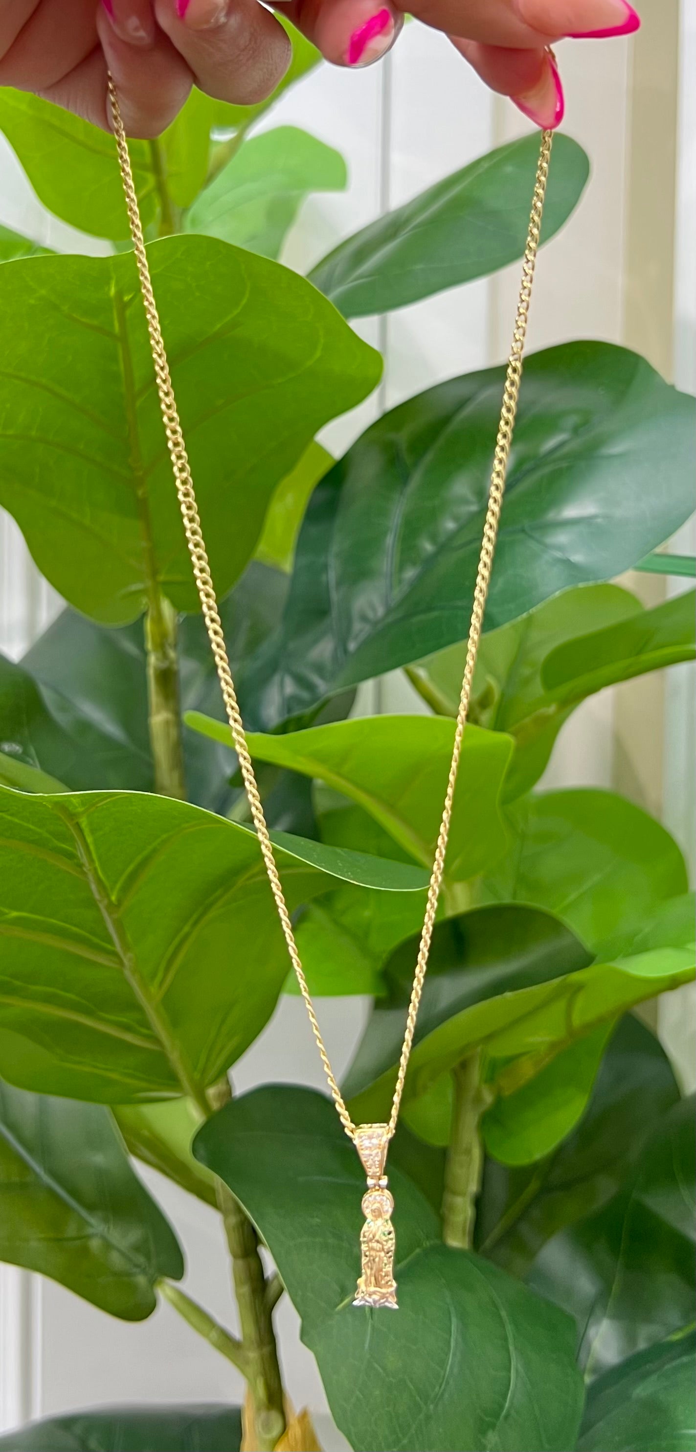 C27- NEW 14K Miami Cuban Chain and Our Lady Of Guadalupe Pendant W.G