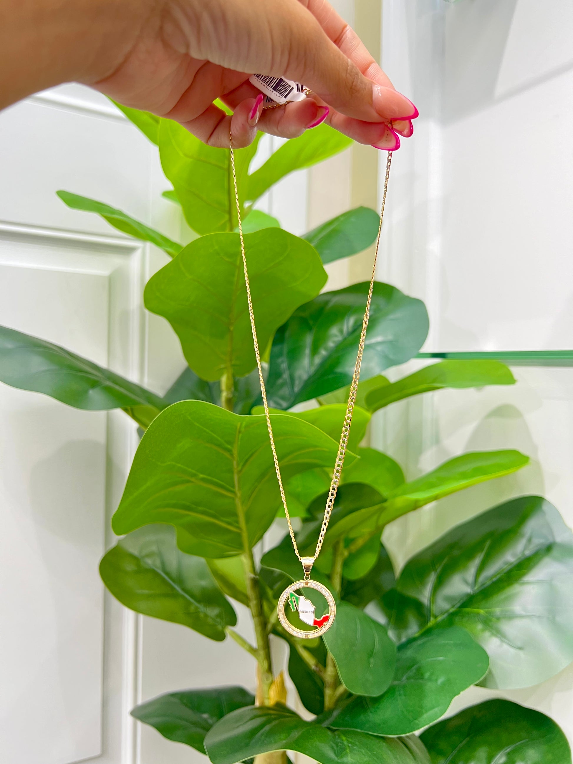 C28- NEW 14K Solid Cuban Chain & Mexican Flag Pendant Set