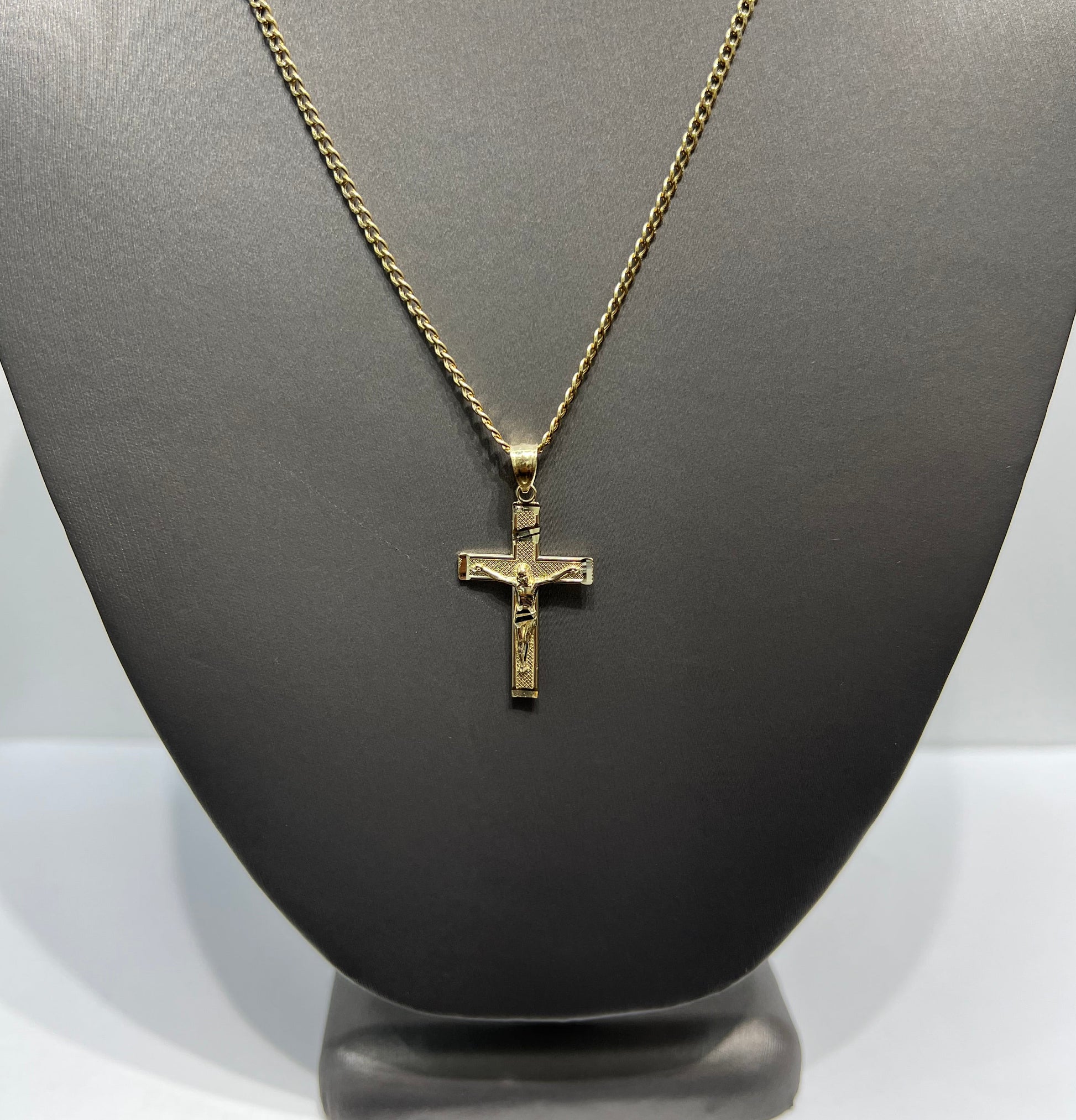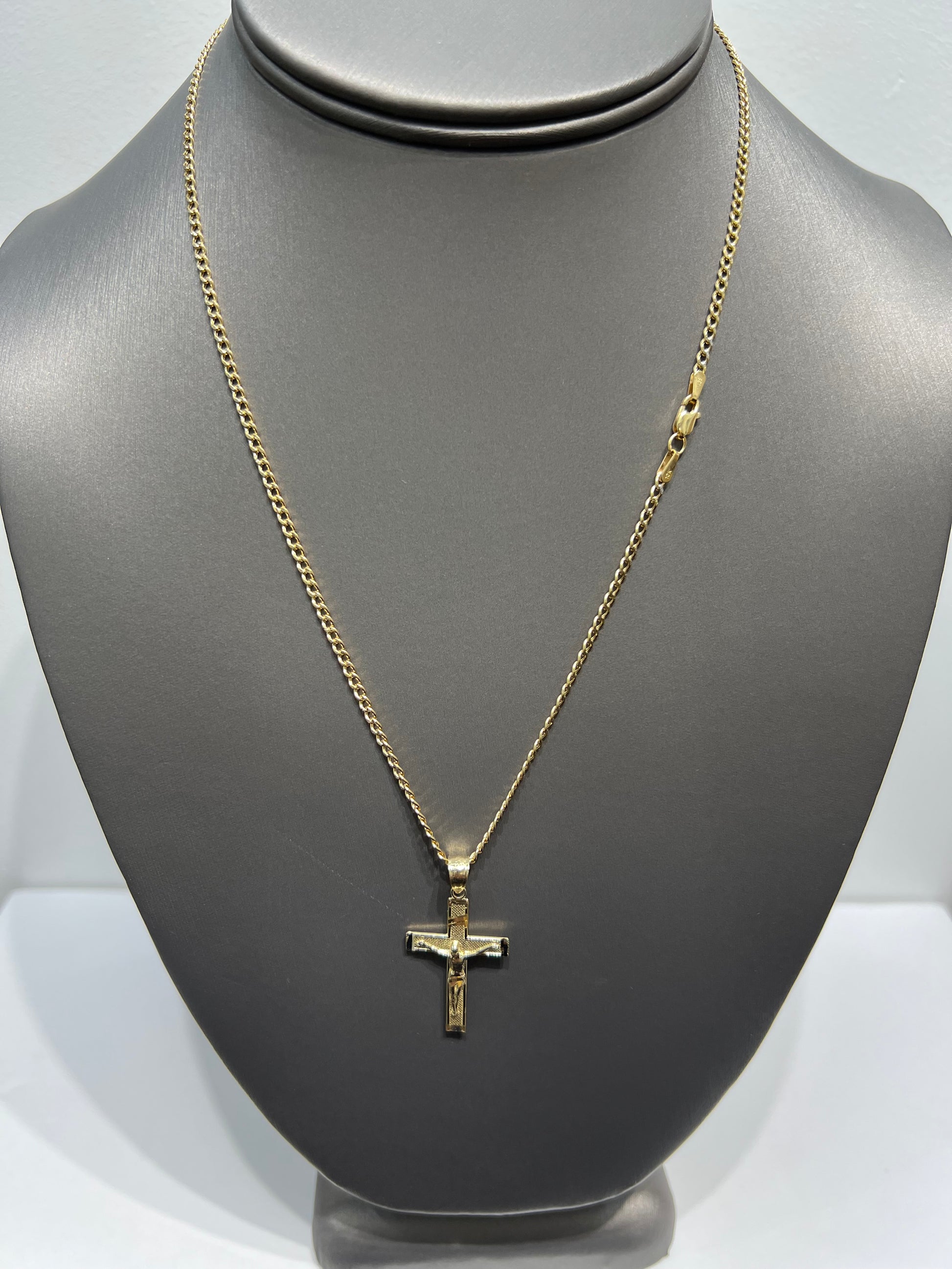 C54- NEW 10K Hollow Cuban Curb Two Tone & Crucifix Pendant SET W.G