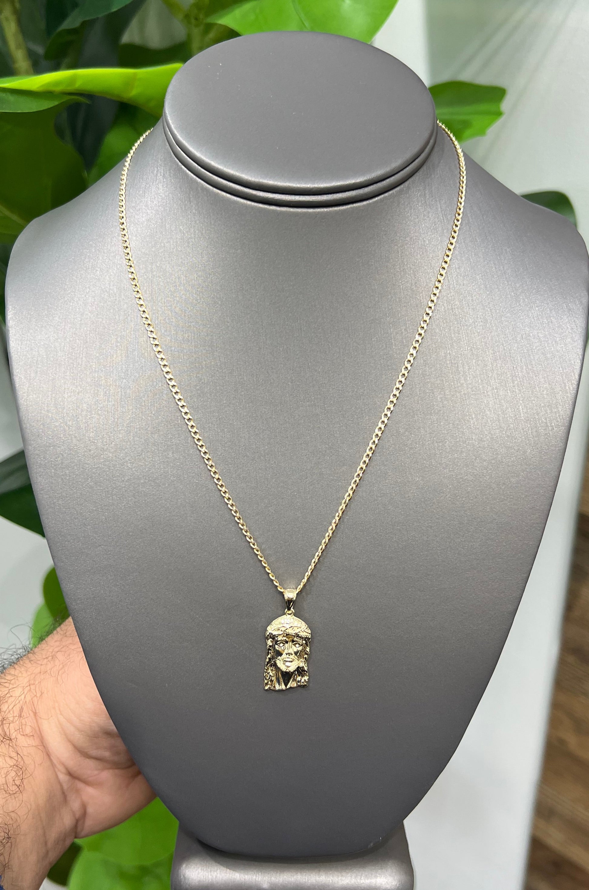 NEW 10K Hollow Cuban curb two tone chain & Jesus Face Pendant. made of 10k Yellow Gold