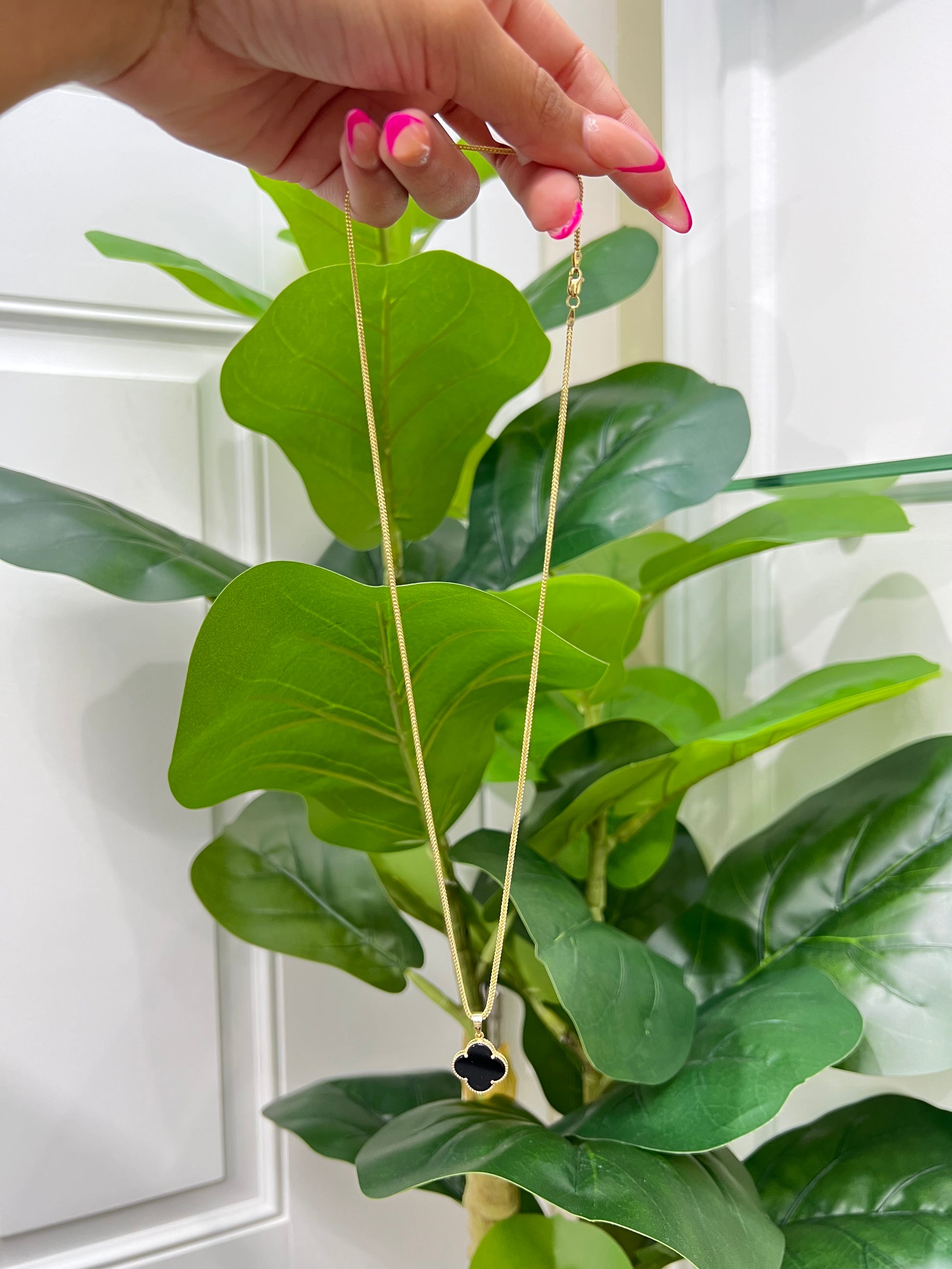C9- NEW 14k Franco Chain & Black Clover Pendant SET W.G