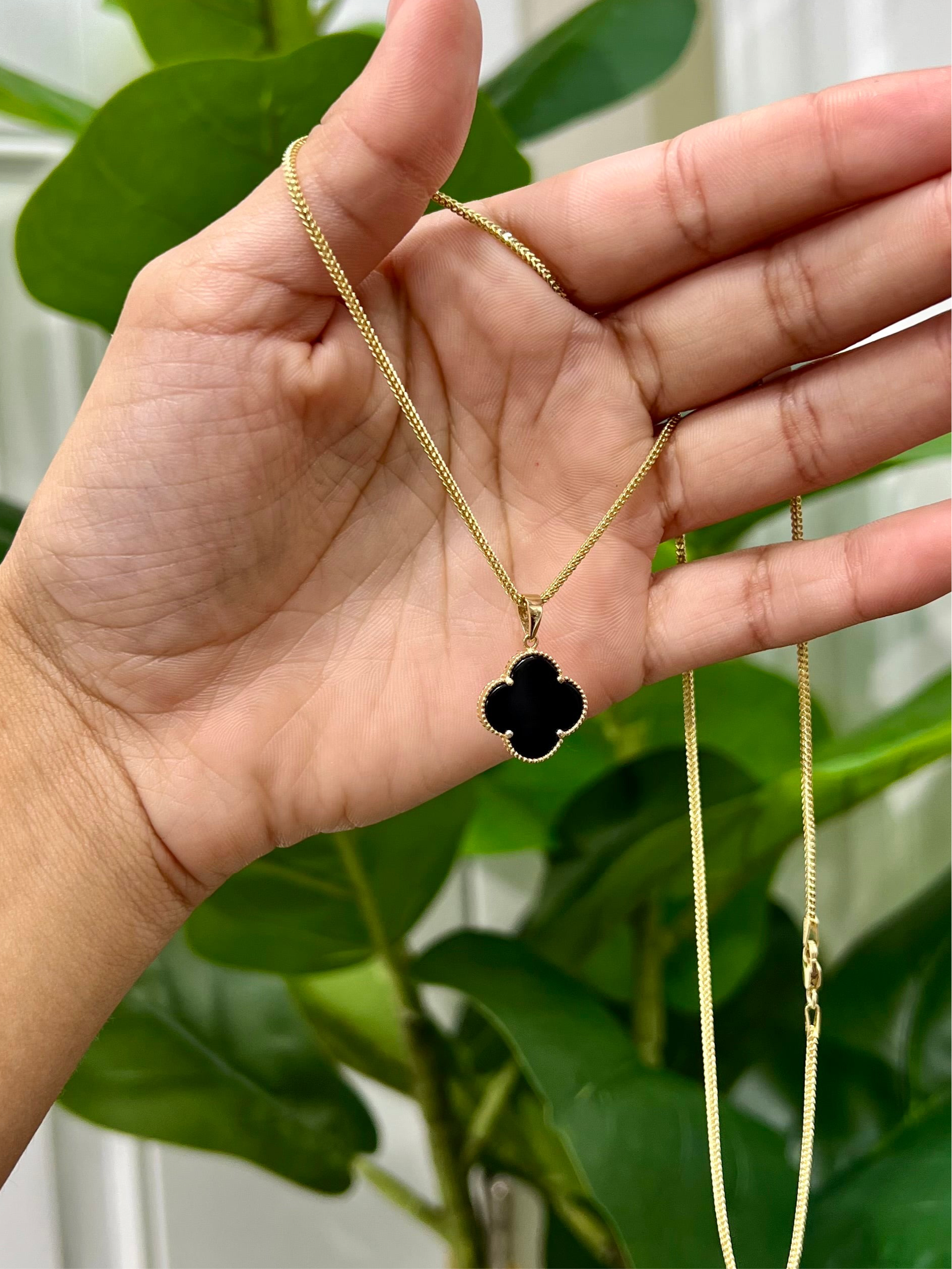 14K Franco chain and Black clover pendant made of 14k yellow Gold