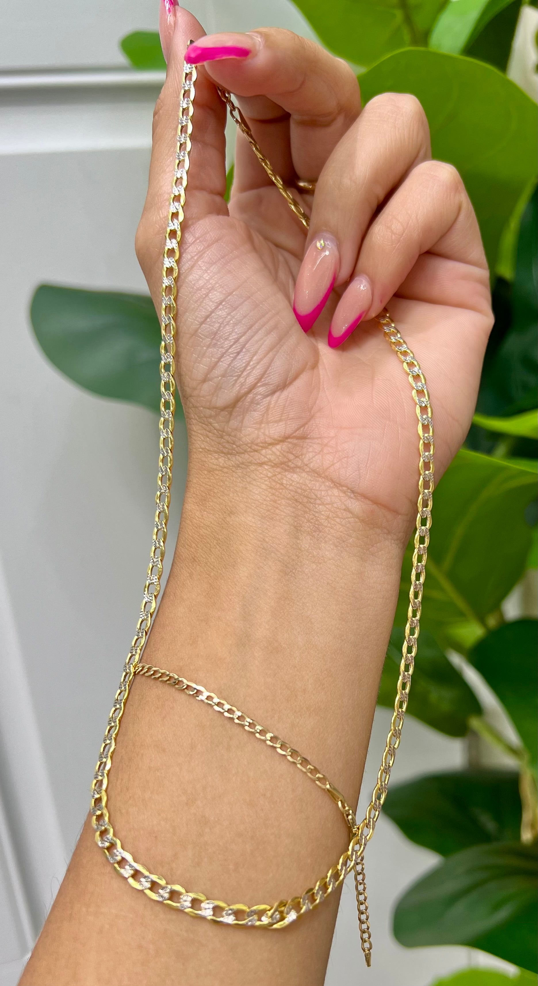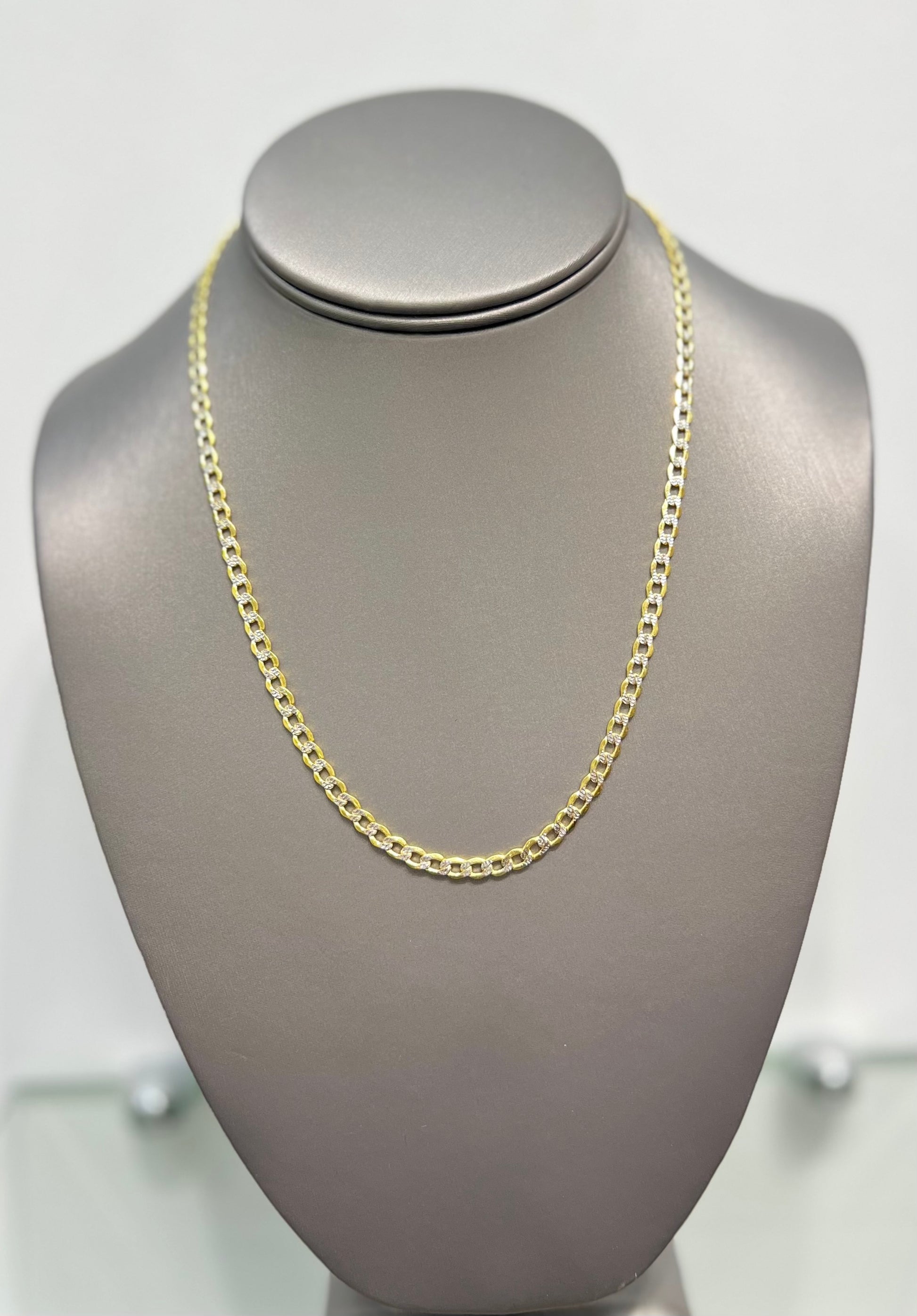 NEW 14K, hollow Cuban curb two-tone made of Real 14k Yellow Gold