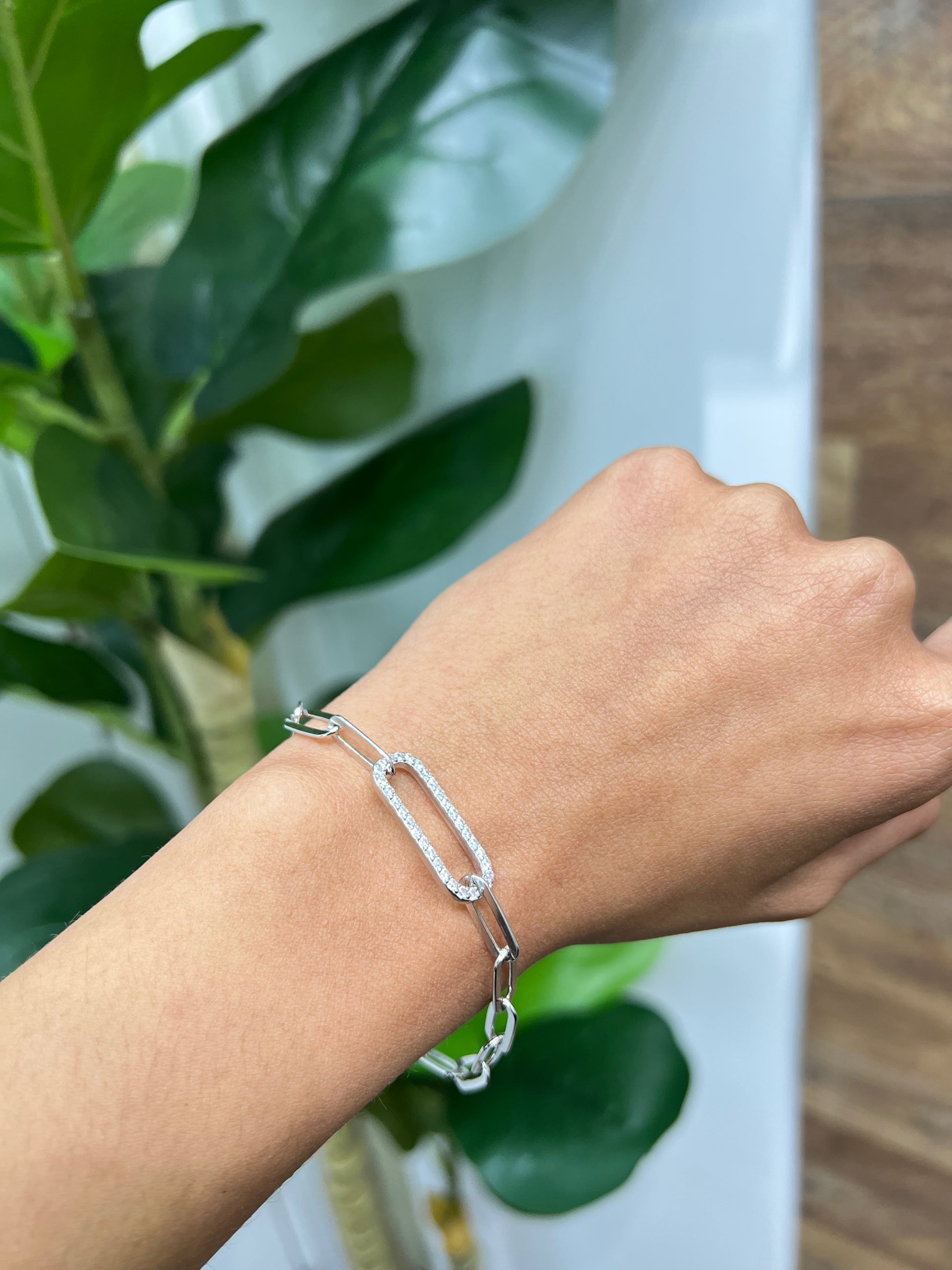 925 Sterling Silver Paperclip CZ Chain Bracelet