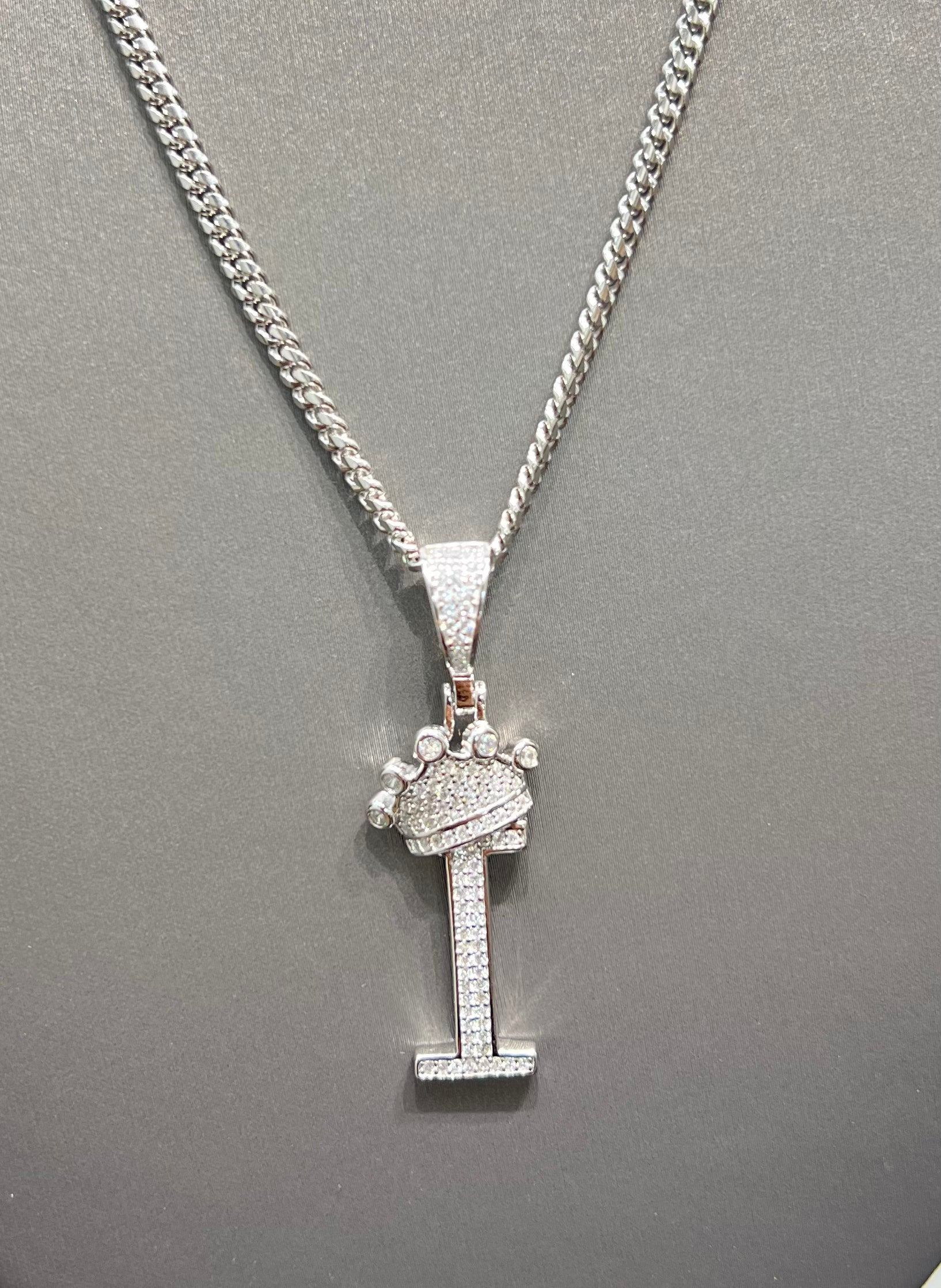 NEW 925 Sterling Silver Letter I with Crown on top pendant