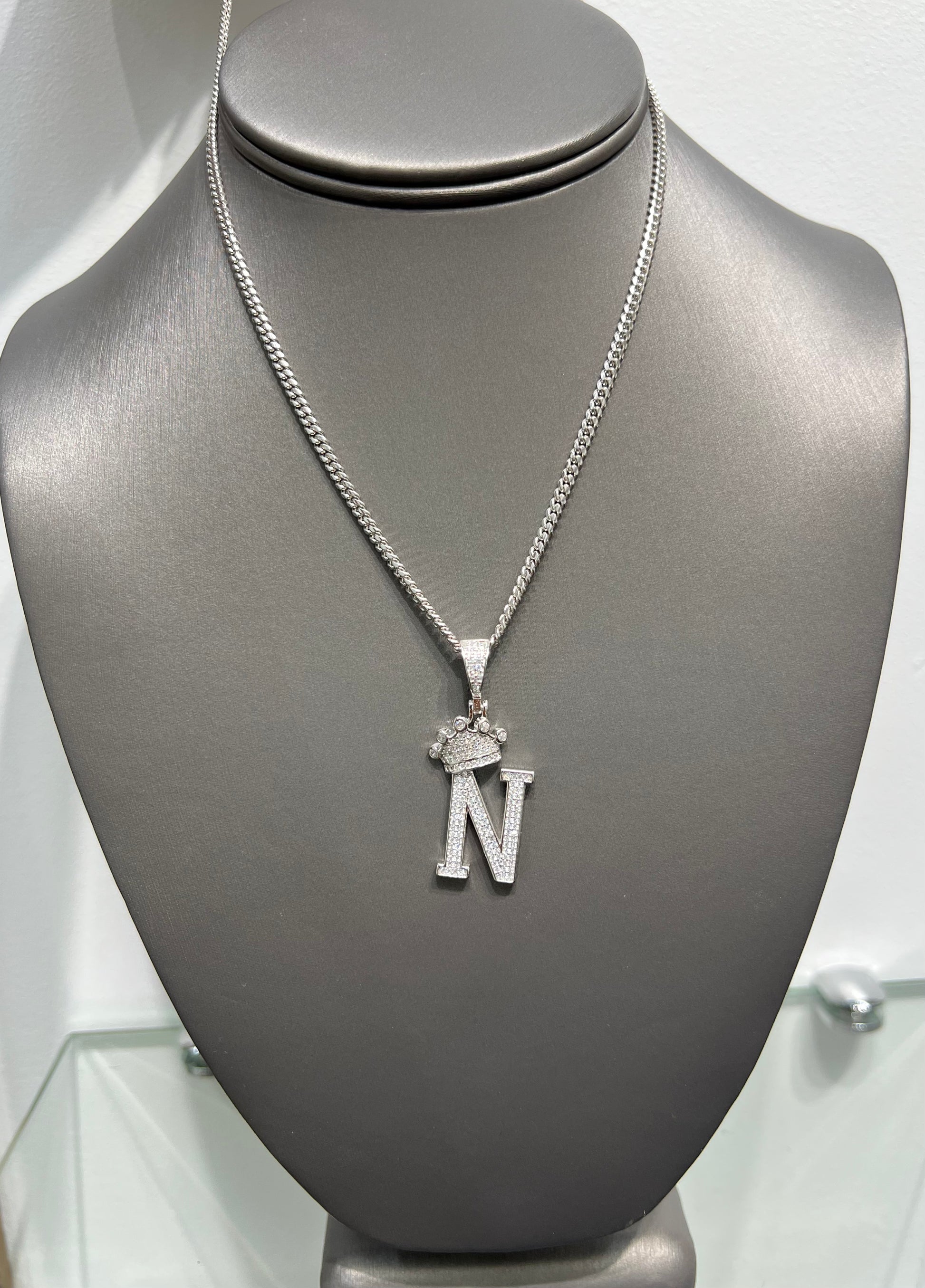 S728- NEW 925 Sterling Silver Crown On Top Letter N Pendant W.G
