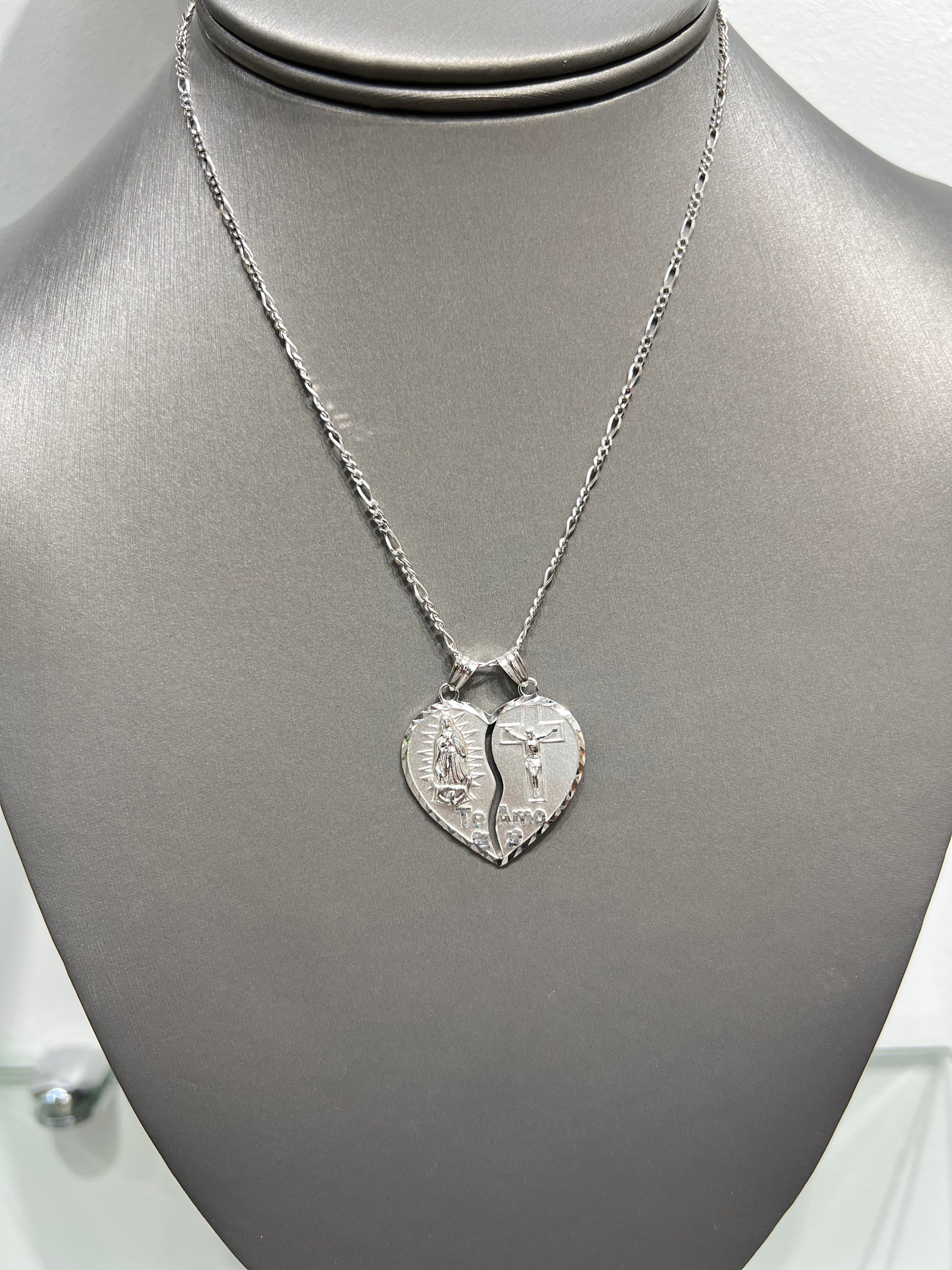 NEW .925 Sterling Silver Two Face Heart Pendant