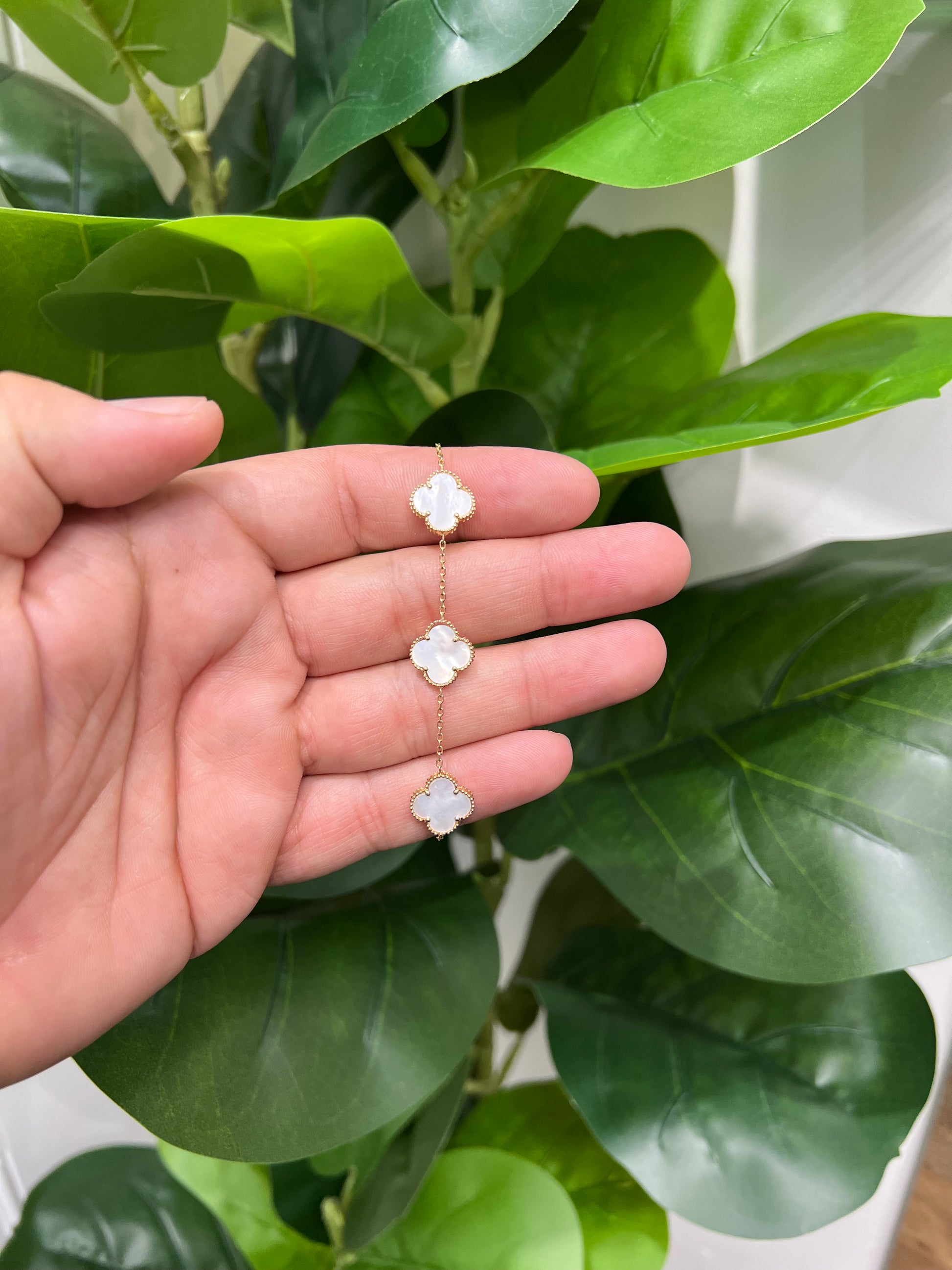 NEW 14k Yellow Gold White Trebol bracelet 7” Length made of Real 14k Gold